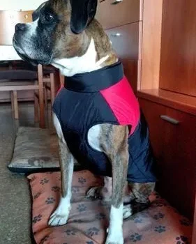 Fits my dog perfectly, covering essential areas while leaving paws free.